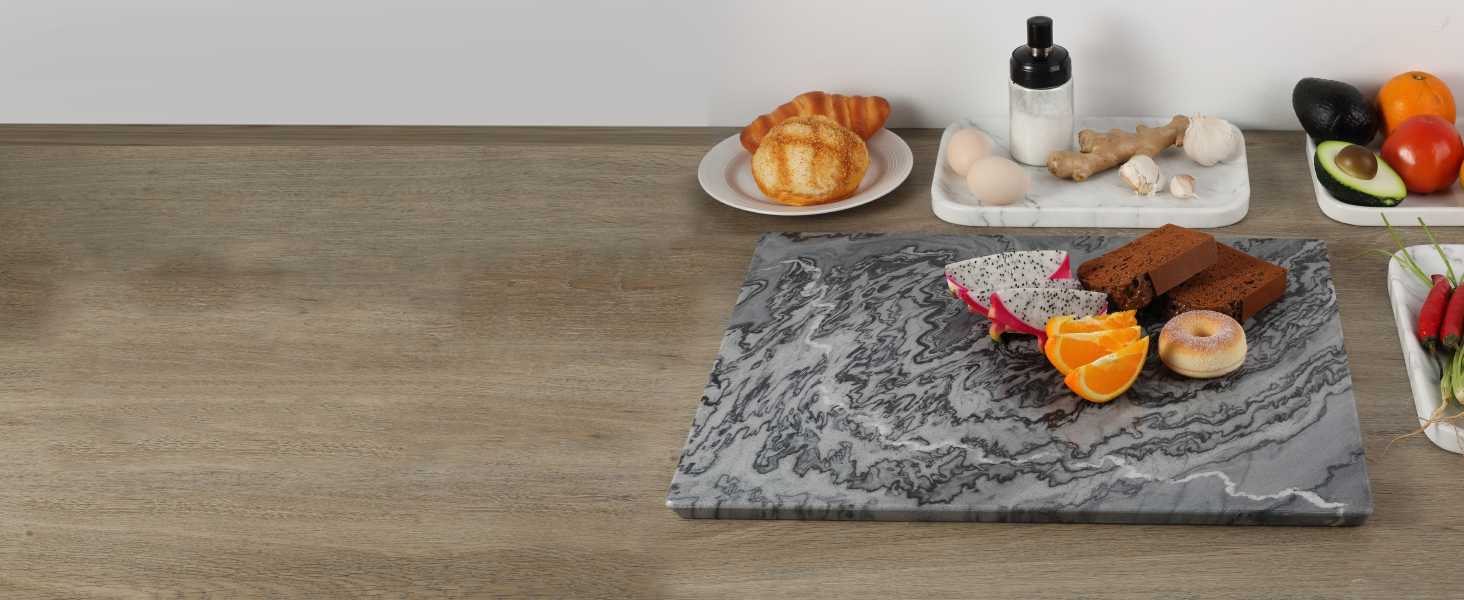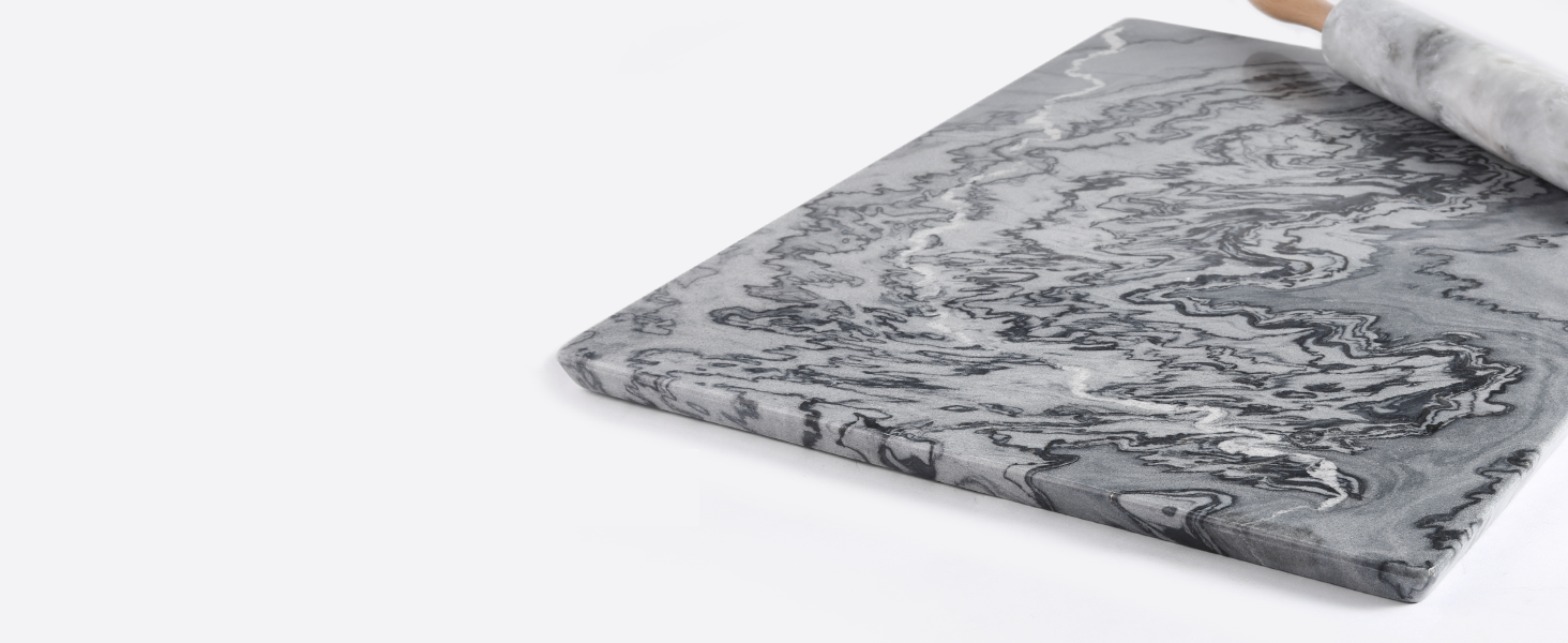 Stable and Secure Design: Our natural marble pastry board offers a solid, stable foundation with its robust construction and substantial weight. It stays firmly in place on your countertop, allowing you to roll dough or chop ingredients with confidence. The heavy, rectangular design ensures that the board won't slide around, providing safety and ease during food prep.