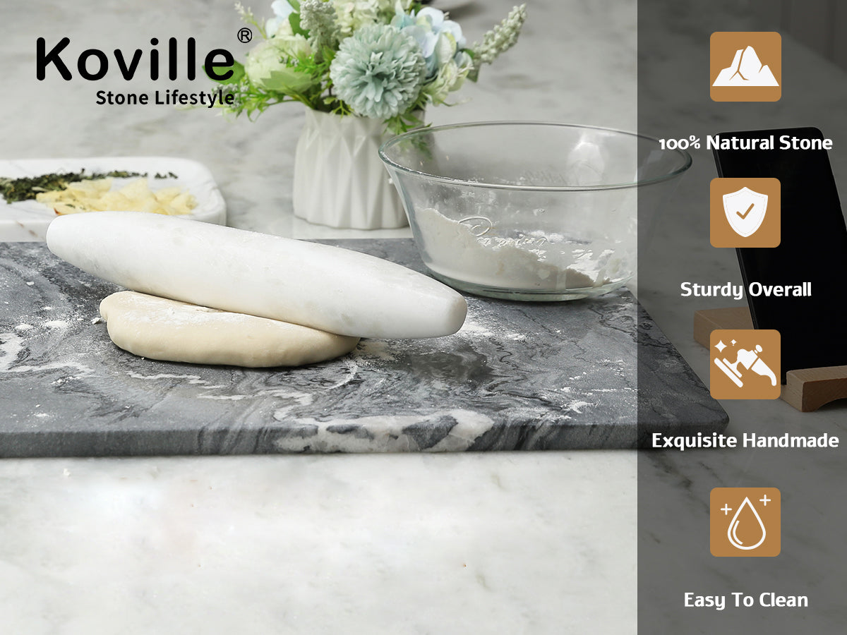 Luxurious African Marble: Sourced from the rich quarries of Namibia, the Koville natural marble rolling pin is made of premium natural marble that is both sterile and harmful to direct contact with the dough. Its distinct veining pattern adds an elegant touch, transforming this rolling pin into a luxurious piece of kitchen decor. Beyond its functionality, the stunning appearance elevates the overall aesthetic of any kitchen with its refined design.