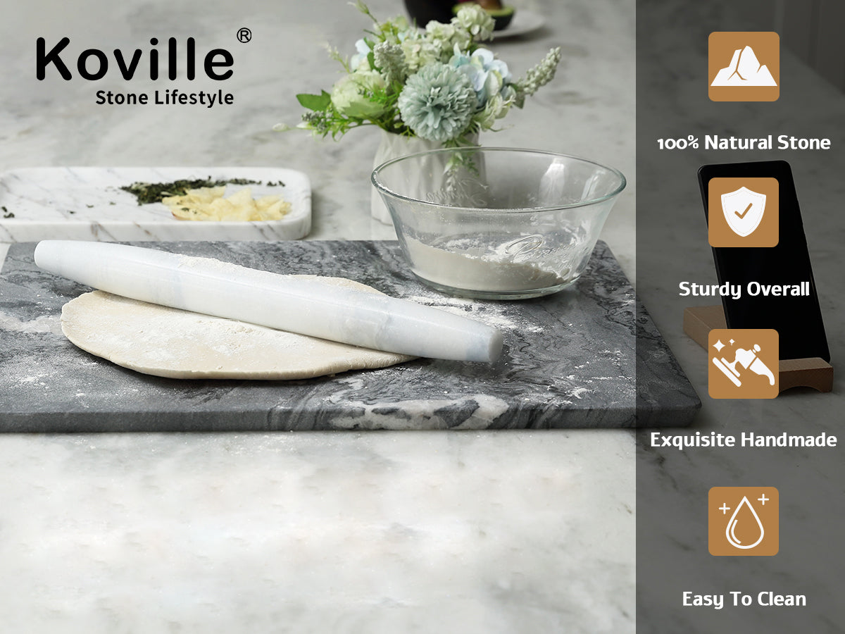 Naturally Non-Stick Surface: This Koville natural marble rolling pin is perfect for all types of dough and pastries. Its smooth, non-stick surface ensures an effortless rolling experience, preventing the dough from sticking and tearing. Make your baking process smoother, quicker, and more enjoyable with this efficient tool.