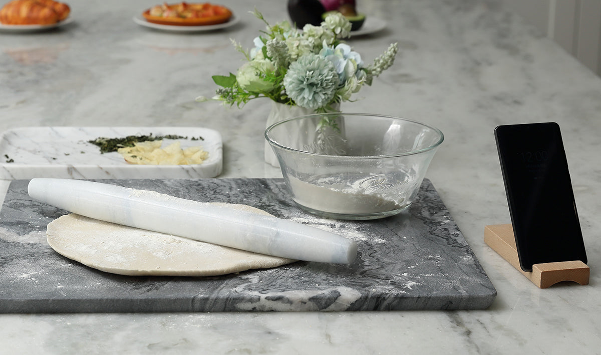 Cool-to-the-Touch Marble: Our natural marble rolling pin stays cool, making it ideal for rolling out dough. Known for its excellent insulation properties, marble remains cool even at room temperature. Enhance this effect by chilling the rolling pin in the fridge for a few minutes, perfect for temperature-sensitive doughs.