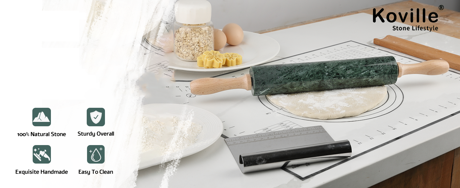 Heavy & Non-Stick Surface: Weighing 2.82 lbs, the Koville heavy marble rolling pin offers excellent stability and smooth rolling. The naturally non-stick surface requires less flour, making it easy to clean while saving you effort. The cool marble property ensures smooth, non-stick dough rolling and makes your baking more efficient.