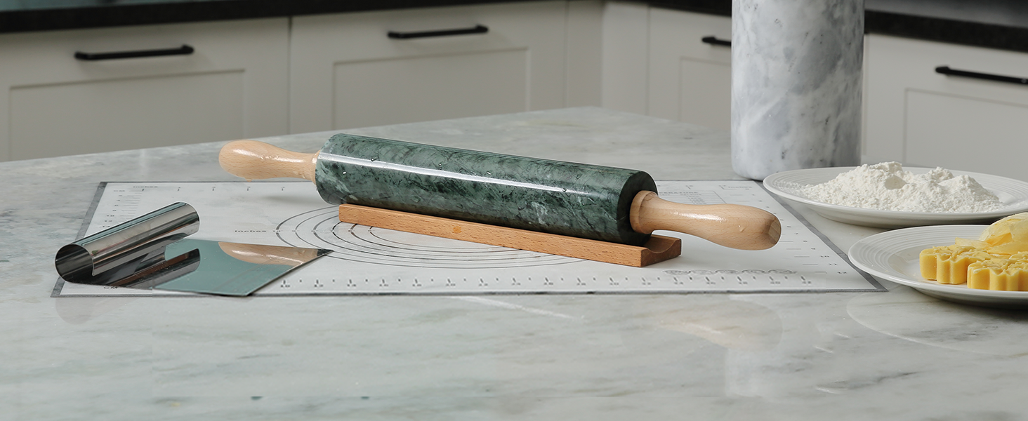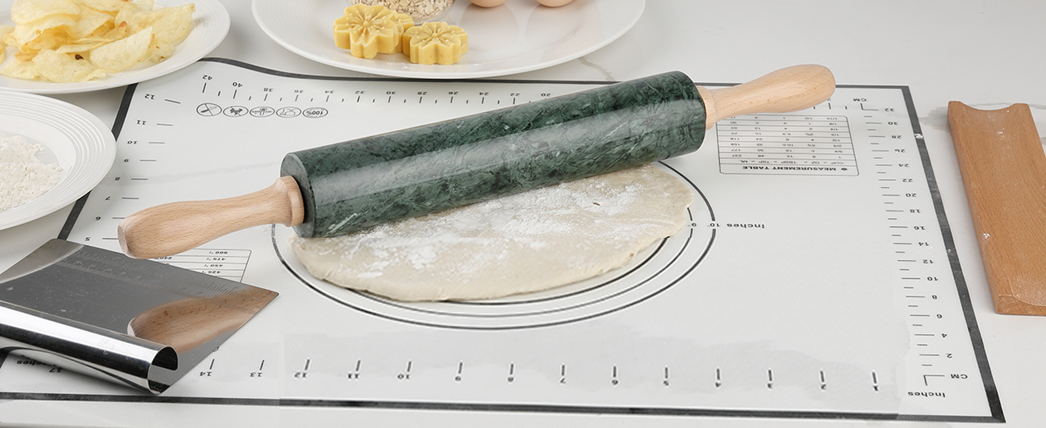 Complete Set for Baking Convenience: Experience the baking convenience with our all-in-one marble rolling pin set! It includes a scraper and a dough mat, ensuring you have everything you need for your baking and cooking projects. This set is perfect for home bakers or professionals looking for a reliable tool that simplifies their baking process.