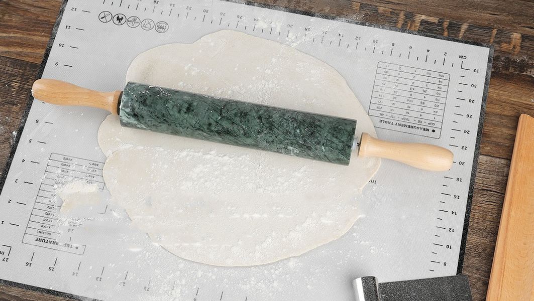 Koville Natural Marble Rolling Pin Scraper Dough Mat Set-Indian Green