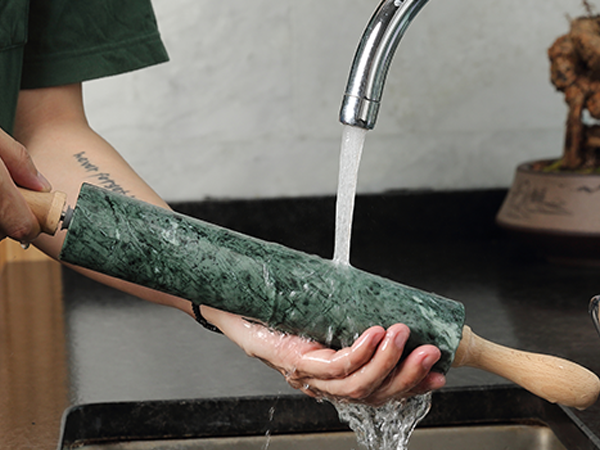 Exquisite Indian Green Marble: Made of premium Indian Green Marble, the Koville natural marble rolling pin is both beautiful and functional. Each rolling pin is truly unique, with its refreshing green tone and one-of-a-kind veining. The polished marble surface ensures longevity, resisting cracks and warping. The natural coolness of the stone keeps the dough from sticking, making your baking process smoother and more enjoyable.