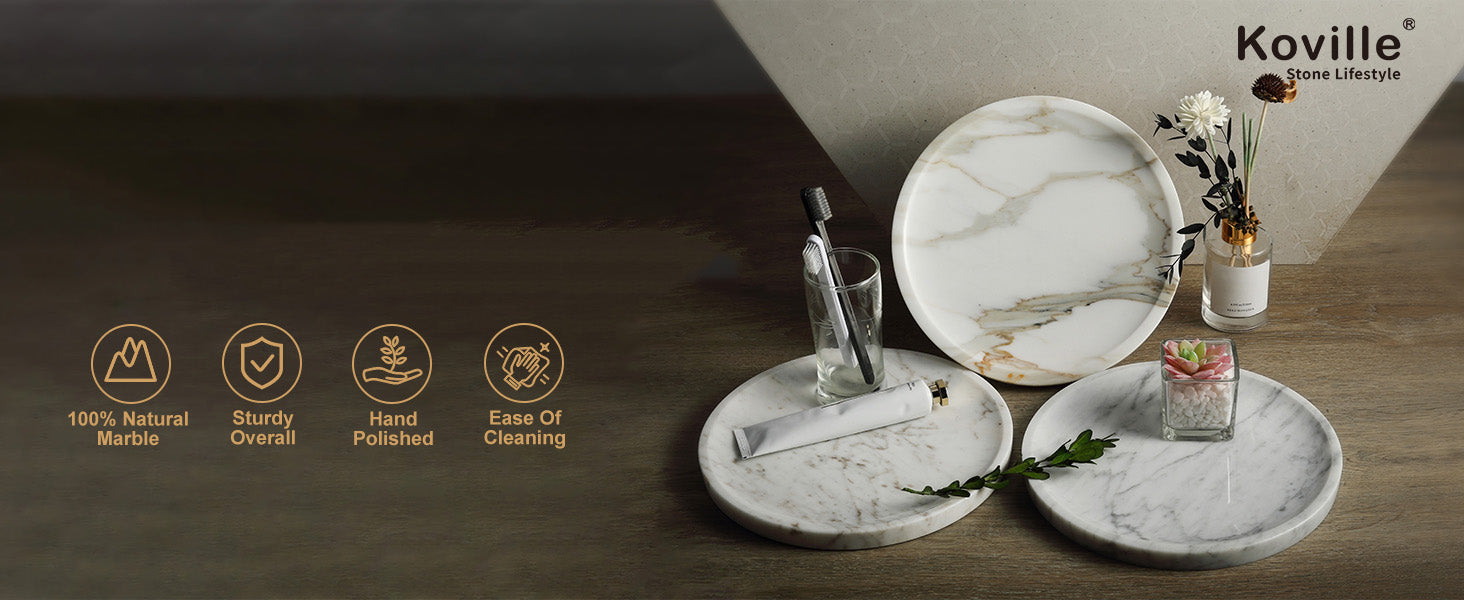 The Koville natural marble serving tray is designed for versatility and it can help you maintain a tidy space