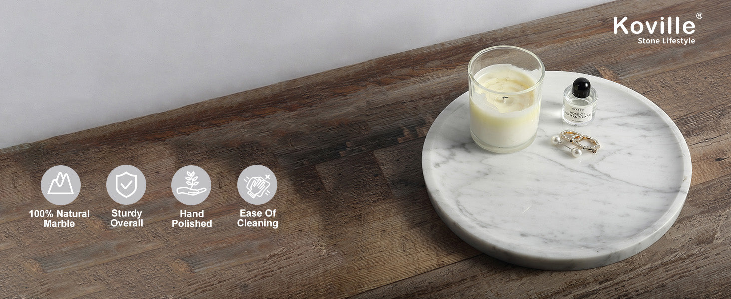 The sterile and harmless Koville natural marble serving tray not only serves drinks, display candles,but also can serve toiletries