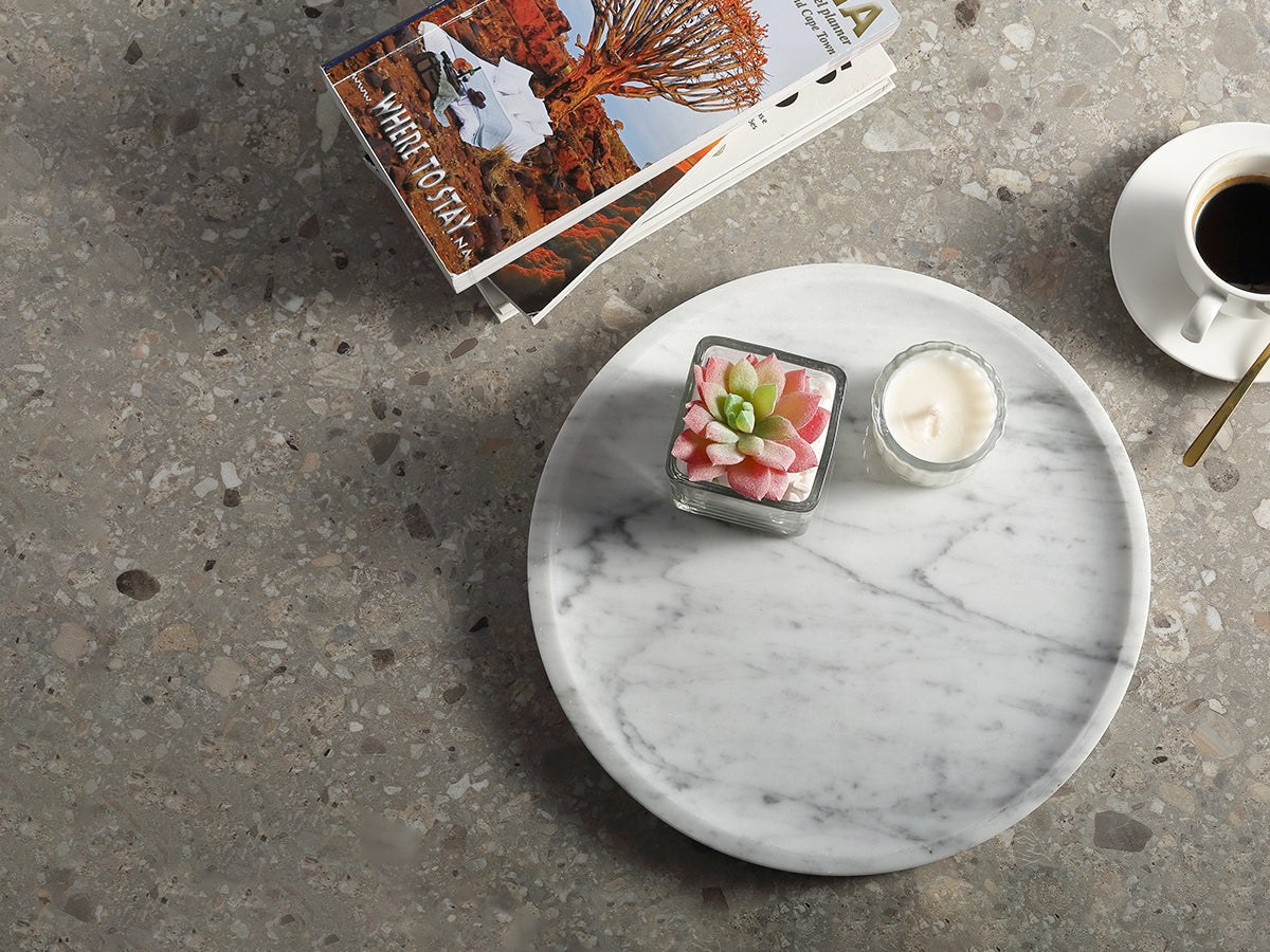 Koville natural marble tray features a stylish and minimalist design that seamlessly blends into any decorative style