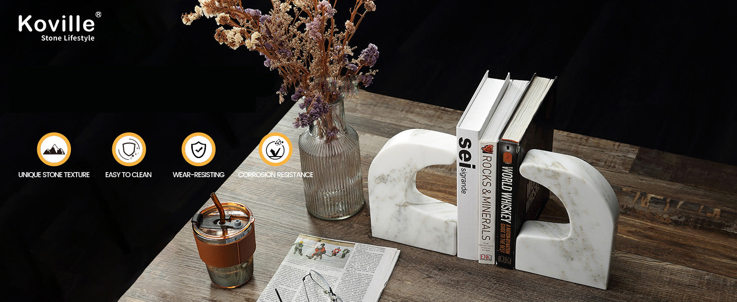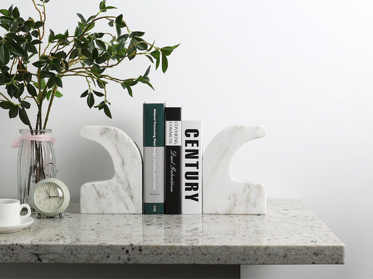 Unique Marble Veining for a One-of-a-Kind Piece: Each natural marble bookend is truly one-of-a-kind, featuring natural variations in veining and texture. No two pieces are identical, giving your bookends a unique look that adds character and luxury to your home while showcasing the beauty of natural stone.