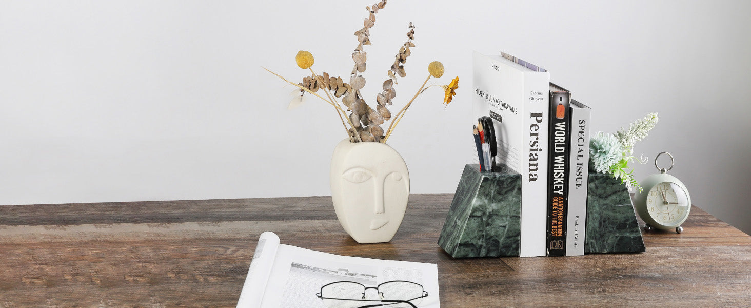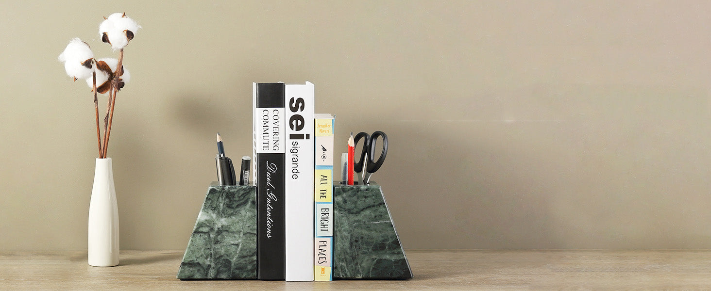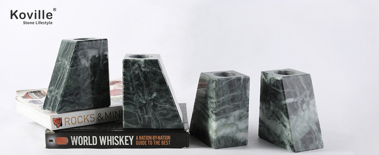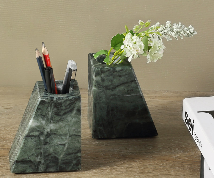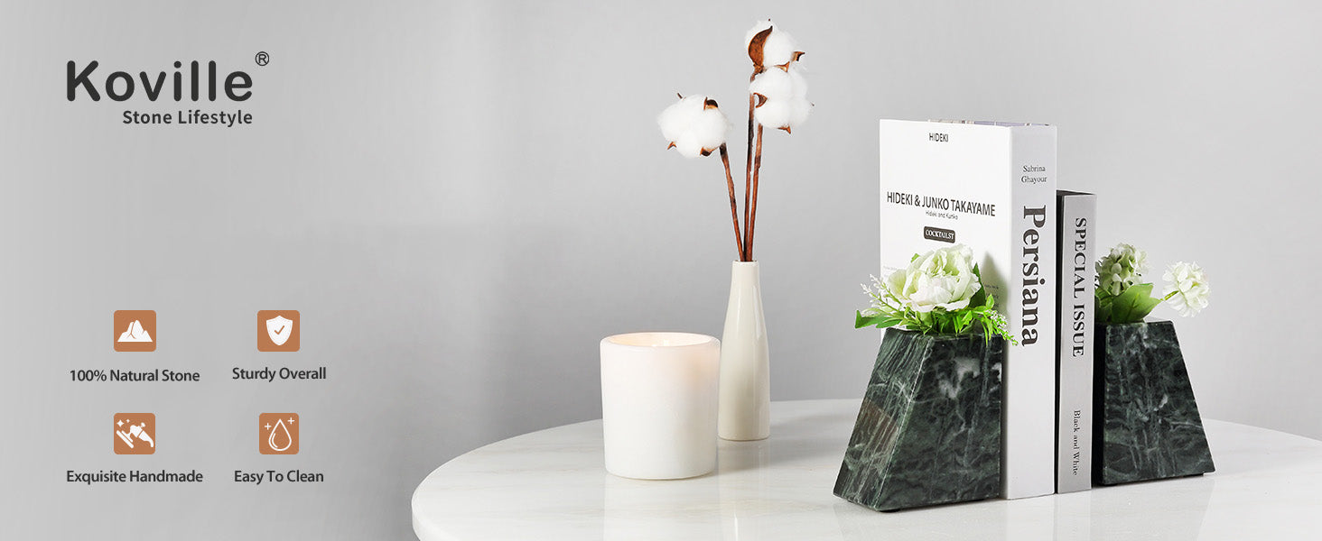 Premium Indian Marble Origin: Crafted from exquisite Indian green marble, the Koville natural marble trapezoidal vase bookend brings the beauty of ancient, heritage-rich stones from India directly to your home. This high-quality marble is renowned for its durability and timeless elegance, making it a luxurious and practical addition to your bookshelf or office decor.