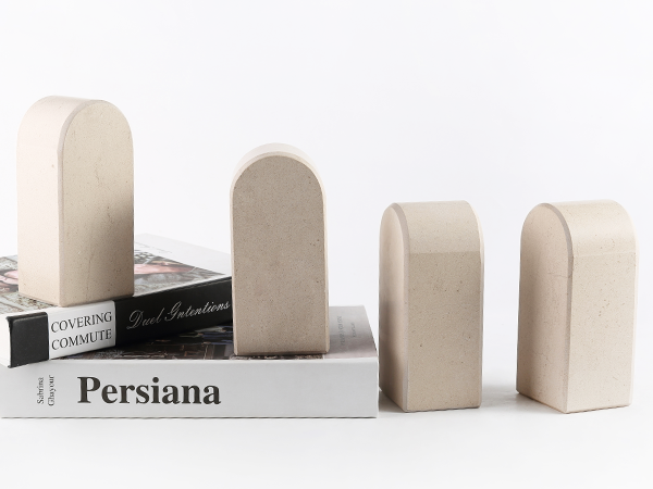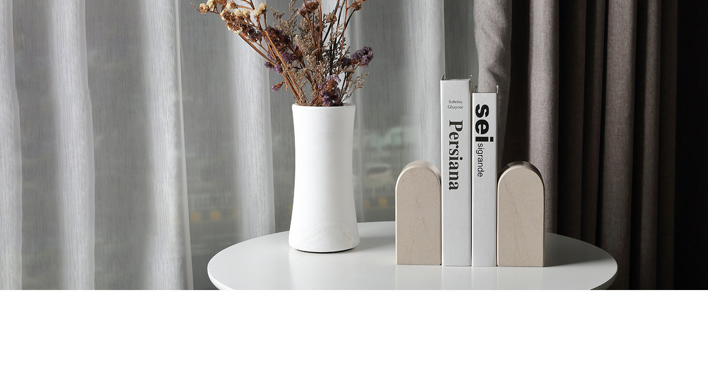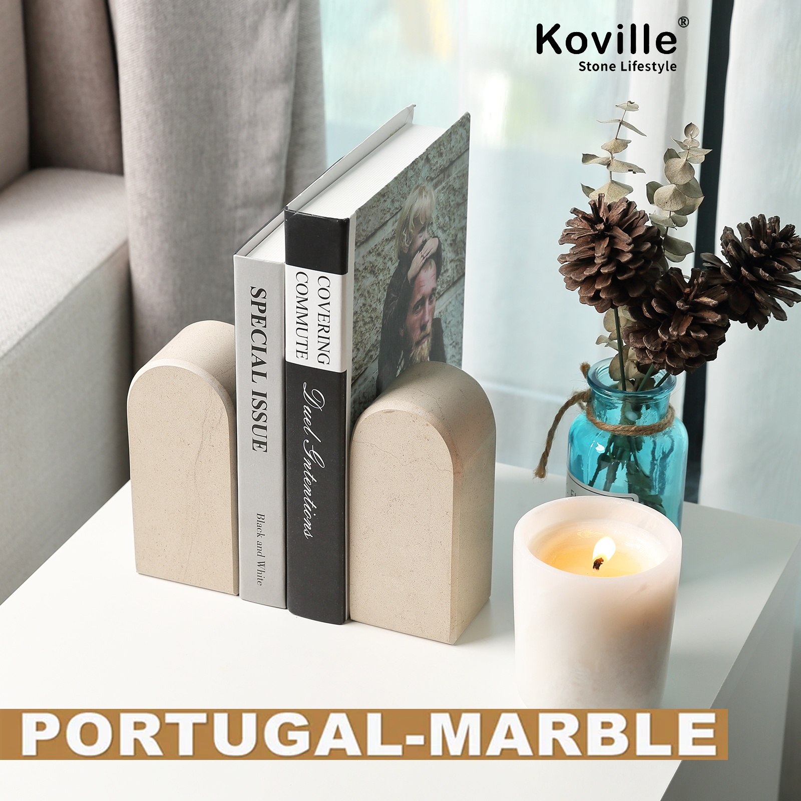 Elegant Natural Marble: The Koville natural granite triumphal arch bookend medium is crafted from Moleanos Beige marble, sourced from Portugal. This premium stone is renowned for its soft beige tone, reminiscent of sunlight on warm earth. The natural texture adds an organic charm, making each bookend a unique statement piece for your home or office decor.