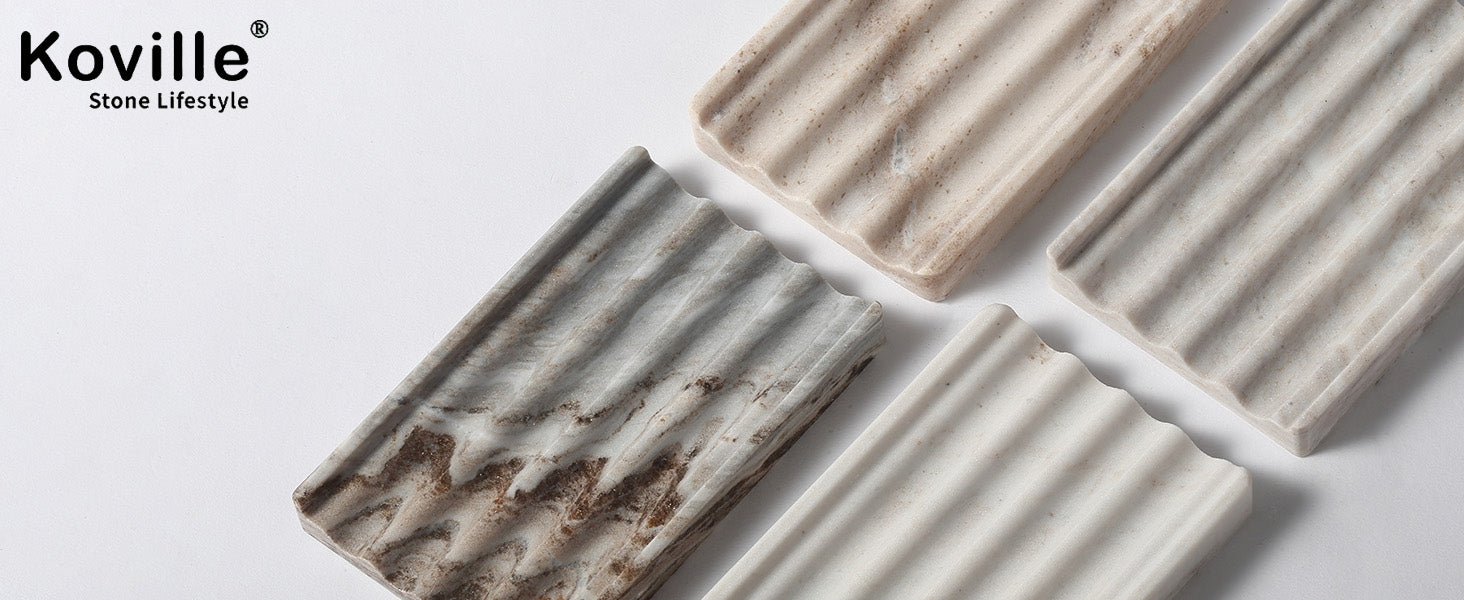 The Koville natural marble wavy soap dish showcases a chic and contemporary design, enhancing the sophistication of your bathroom vanity or shower area. Its understated look harmonizes with a variety of decor styles, ranging from modern to classic.