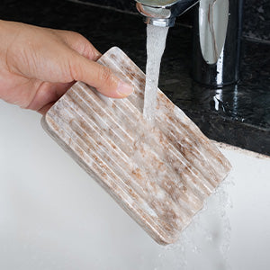 Strong and Reliable Construction for Everyday Use: Designed with both aesthetic appeal and durability, the Koville natural marble wavy soap dish features a 5.46in x 3.51in concave design, perfectly suited for most standard soaps. Its heavy-duty marble structure guarantees that the dish remains sturdy and stable even with daily handling. The elegantly wavy edges not only add a modern touch but also prevent soap from slipping off, keeping it securely in place and safeguarding your countertop from soap residue and moisture.